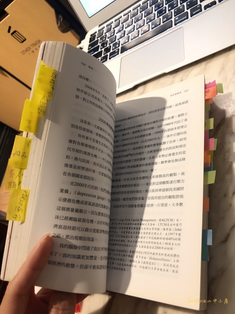 原則,在書目編籍歸類在成功法、生活指導,是我很少接觸的類型的書,但我很想了解像這樣成功的基金經理人如何看待他們的工作與生活,他又分享許多細節對每個想法詳細解讀,50幾年的成功失敗經驗,非一朝一夕就可以看完,我跟吳大大在圖書館借了兩本原則,兩個人在那幾天各自窩在自己的角落讀書,我們都一致認同,這應該要買回來當成家書(哈哈,有點誇張),我看完這本書時,內心是很感激的,他就像老師、 像教練一樣,把每一件原則敘述詳盡,只差有點不順的翻譯,要去判斷作者的原意。(以前我常常買書,但有些書買了10年,還沒翻過。所以現在養成,在書局或是圖書館借來看,看完可以買再買)