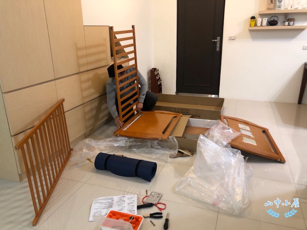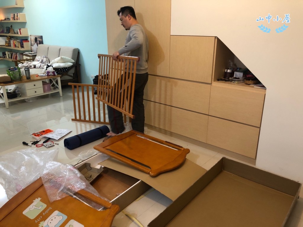 下班後爸爸還要組裝藍天的嬰兒床,那個眼袋很深。