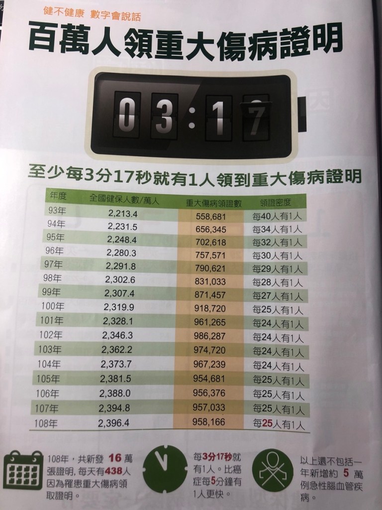 而急性腦中風不發證,在107年就高達5萬人急性腦血管疾病,適用重大傷病身份。