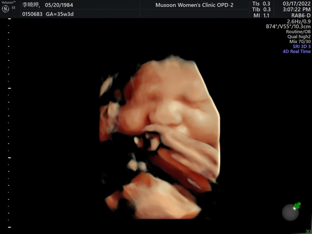 胖胖雲na,32週開始就肉肉的,常常因為哥哥的哭聲在媽媽的肚子裡動得更厲害。哥哥也會抱著媽媽的肚子拍拍(這時期的孩子都是用拍打的),但對肚臍更有興趣。